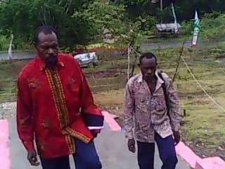 Mr. Marthen Samon and Teacher Nathan Yaboysembut ey. happily go for worship